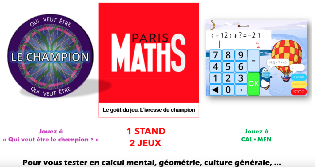 Le collège Jules Ferry d’Eaubonne est présent au Salon depuis 2022. Cette année, des élèves de 6e et 5e viendront animer le stand PARIS-MATHS : « Le goût du jeu – L’ivresse du champion », accompagnés de leur professeur.