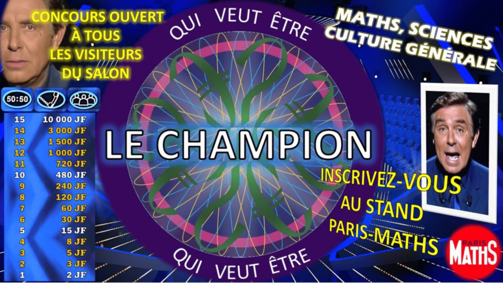 « Qui veut être le champion ? », quiz de Maths sur le modèle de la célèbre émission : niveau 6e – 5e. Venez gagner des JF !