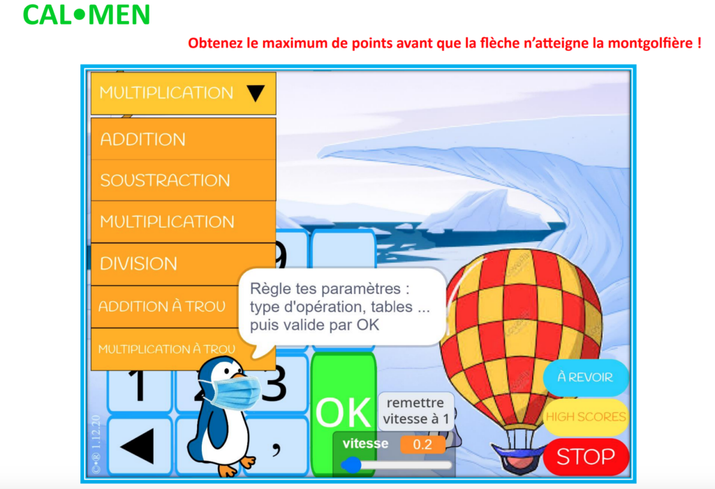 CAL•MEN, application de calcul mental pour tous niveaux de la primaire au collège.